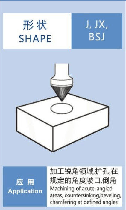 Machining of acute-angled areas, countersinking, beveling, chamfering at defined angles